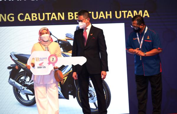 KUALA LUMPUR, 21 NOV: Keputusan saat akhir pemilik sebuah syarikat katering menghantar borang cabutan bertuah pada acara penutup Ekspo Penyelidikan dan Pembangunan dan Inovasi Selangor (SRIE) 2021 membawa tuah apabila memenangi hadiah utama, motosikal jenis Honda Dash.