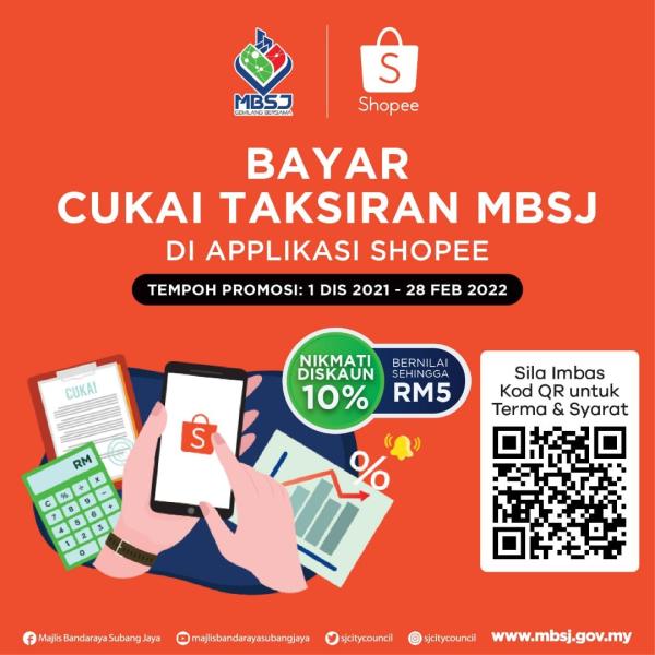 SHAH ALAM, 6 DIS: Orang awam boleh melunaskan bayaran cukai taksiran Majlis Bandaraya Subang Jaya (MBSJ) menerusi aplikasi Shopee dan nikmati potongan 10 peratus.