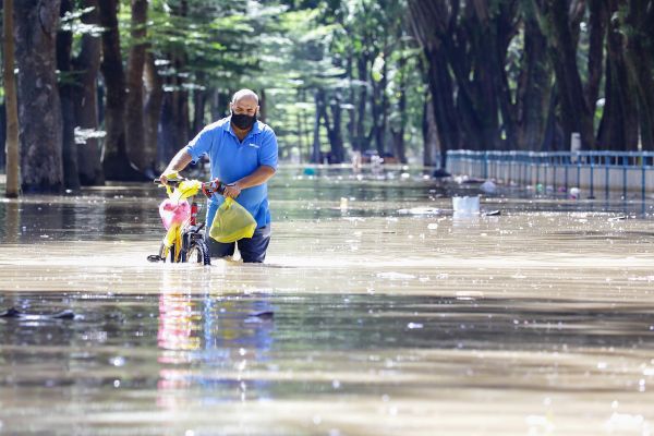 Penduduk meredah banjir ketika tinjauan di Taman Sri Muda, Seksyen 25, Shah Alam pada 21 Disember 2021. Foto FIKRI YUSOF/SELANGORKINI