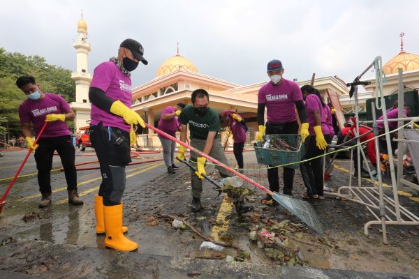 Sukarelawan Majlis Perbandaran Hulu Selangor turut serta bergotong royong membersihkan kawasan Masjid Taman Sri Muda, Seksyen 25, Shah Alam pada 25 Disember 2021. Foto AHMAD ZAKKI JILAN/SELANGORKINI