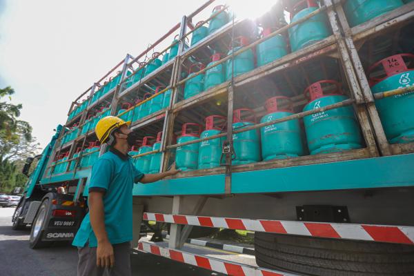 Pemandu Treler Gas LPG Petronas, Ahmadi Mohd Yusuf memeriksa Gas LPG ketika Serahan Sumbangan Banjir Gas LPG oleh Petronas di Bangunan SUK Selangor, Shah Alam pada 6 Januari 2022. Foto HAFIZ OTHMAN/SELANGORKINI