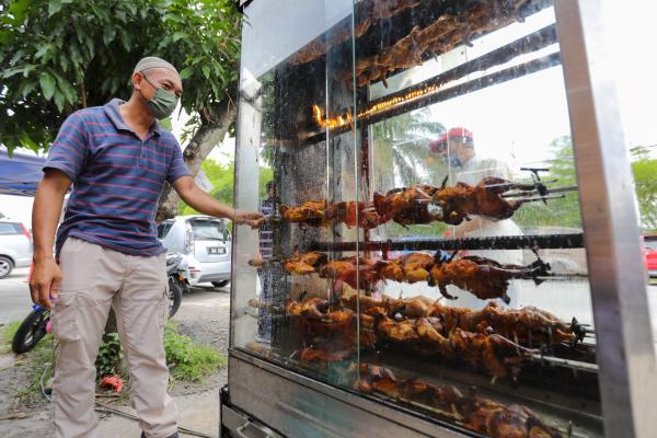 TERIK matahari cukup terasa pada siang hari. Bahangnya sampai ke malam. Jika hujan, airnya menitik di celahan zink lalu membasahi lantai bilik kedai peniaga ayam golek Mohd Hazeli Hamdan.