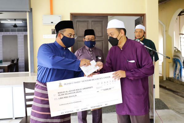 HULU LANGAT, 28 JAN: Sebanyak RM5,000 disumbangkan Dato’ Menteri Besar kepada Masjid Al-Azhar Kolej Universiti Islam Antarabangsa Selangor (Kuis) untuk aktiviti pengimarahan.