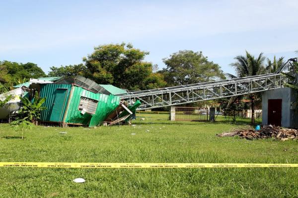 "Seusai solat, kami meninjau tempat di mana bunyi dentuman itu kedengaran dan melihat sebuah menara stesen pemancar rangkaian telekomunikasi setinggi 30 meter tumbang serta menghempap kabin yang terletak di belakang surau hingga musnah.