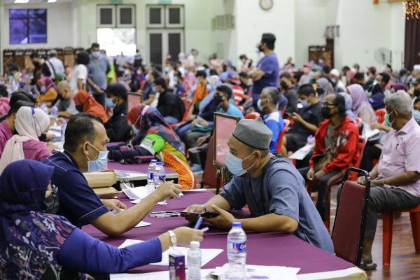 Mangsa banjir menerima Bantuan Selangor Bangkit (BSB) di Dewan Serbaguna Pejabat Daerah dan Tanah Klang, Klang pada 23 Februari 2022. Foto FIKRI YUSOF/SELANGORKINI