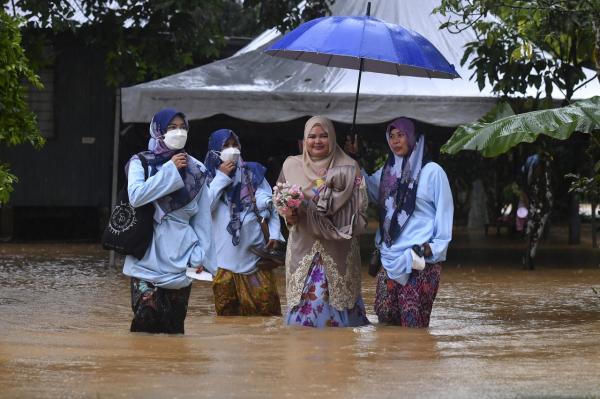 "Khemah untuk jamuan semua tetamu pula terpaksa dialihkan ke atas jalan kerana halaman rumah dinaiki air," katanya yang mengenali suami sejak sekolah menengah.