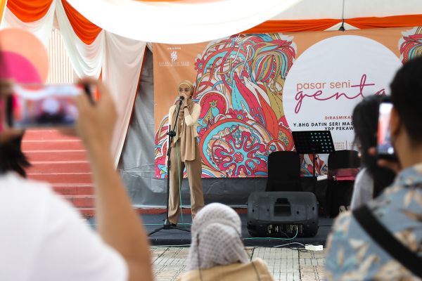 Syahirah Wasabi, 26, membaca puisi bertajuk Hilang sempena program Pasar Seni Genta di perkarangan Laman Budaya Tasik Shah Alam pada 26 Februari 2022. Foto REMY ARIFIN/SELANGORKINI