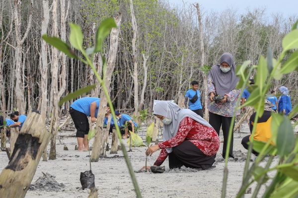 Sukarelawan menanam anak pokok bakau jenis ‘Rhizophora Apiculata’ dan ‘Rhizophora Mucronata’ sempena program penanaman pokok anjuran Majlis Perbandaran Sepang (MPSepang) dan Jabatan Perhutanan Selangor di Sungai Sepang Besar, Pantai Pasir Putih, Sepang pada 27 Februari 2022. Foto REMY ARIFIN/SELANGORKINI