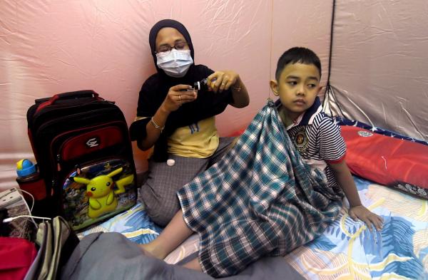 Penghuni PPS dari Kampung Lanchong Jaya, Edison Ali, 41, dan Fatonah Abdul Ghoni, 46, berkata walaupun kawasan rumah mereka tidak dinaiki air, pasangan suami isteri itu tetap membawa tiga anak mereka termasuk Muhammad Qhaleef Shah, sembilan tahun, yang terpaksa menjalani pantang berkhatan hari pertamanya di PPS itu.