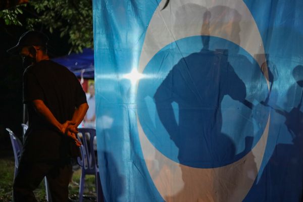 Seorang lelaki melintasi bendera Parti KEADILAN Rakyat ketika ceramah kelompok Dewan Undangan Negeri (DUN) Semerah, Batu Pahat pada 10 Mac 2022.Foto HAFIZ OTHMAN/SELANGORKINI