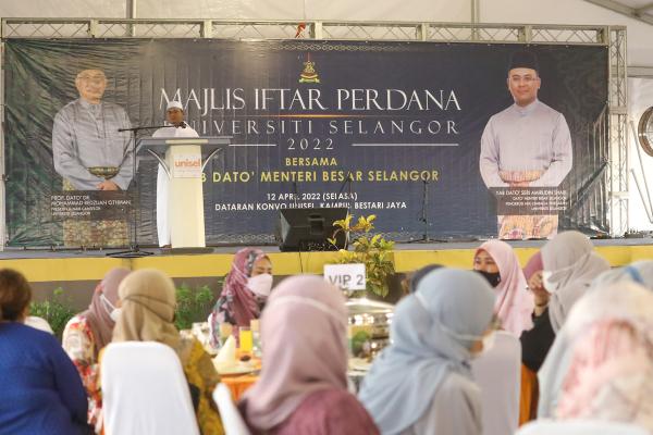 KUALA SELANGOR, 12 APRIL: Seramai 2,000 kakitangan dan pelajar Universiti Selangor (Unisel) diraikan dalam Majlis Iftar Perdana bersama Dato’ Menteri Besar hari ini.