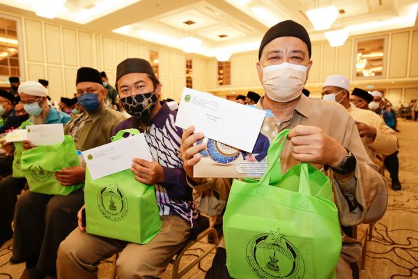 Penerima menunjukkan sumbangan yang di terima ketika majlis Penyampaian Insentif Rahmah Ramadan Kepada pegawai masjid kariah Negeri Selangor di Dewan Syarahan dan Muzakarah, Shah Alam pada 28 April 2022. Foto FIKRI YUSOF/SELANGORKINI