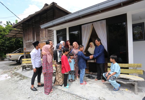 Mohd Sapawi Abdul Rani, 68, dan isteri Norhayati Kassim, 67, menyambut kepulangan anak, menantu dan cucu yang pulang berhari raya pada 3 Syawal di Kampung Sungai Sekamat, Kajang. Foto AHMAD ZAKKI JILAN