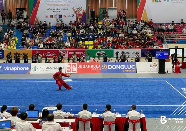 Kilauan emas pertama di Cau Giay Gymnasium di sini, hadir menerusi Clement Ting Su Wei, 24, pada acara changquan lelaki selepas beliau mencatatkan 9.70 mata.