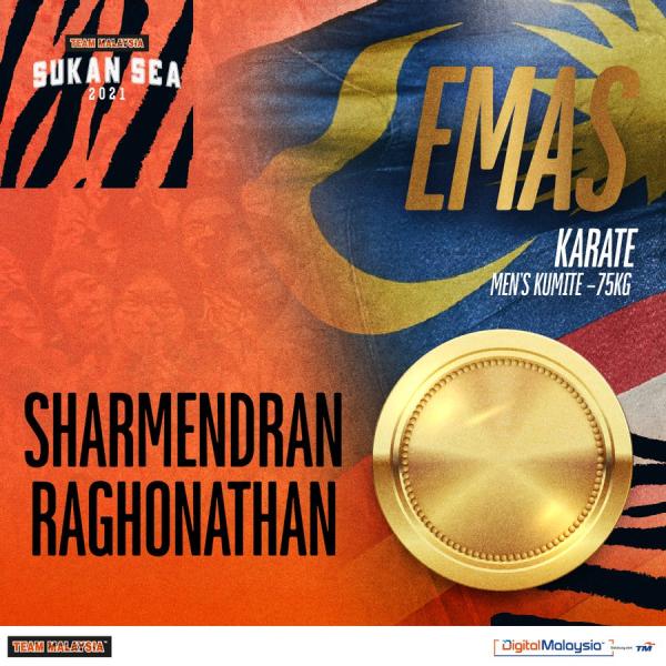 Kejayaan tersebut menyaksikan Sharmendran meraih emas tiga kali berturut-turut edisi Sukan SEA.