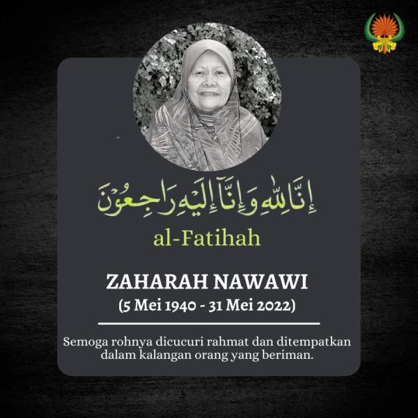 KUALA LUMPUR, 31 MEI: Sasterawan Zaharah Nawawi meninggal dunia di Hospital Pakar KPJ Rawang, Selangor pada 7.55 pagi tadi dipercayai akibat penyakit barah.