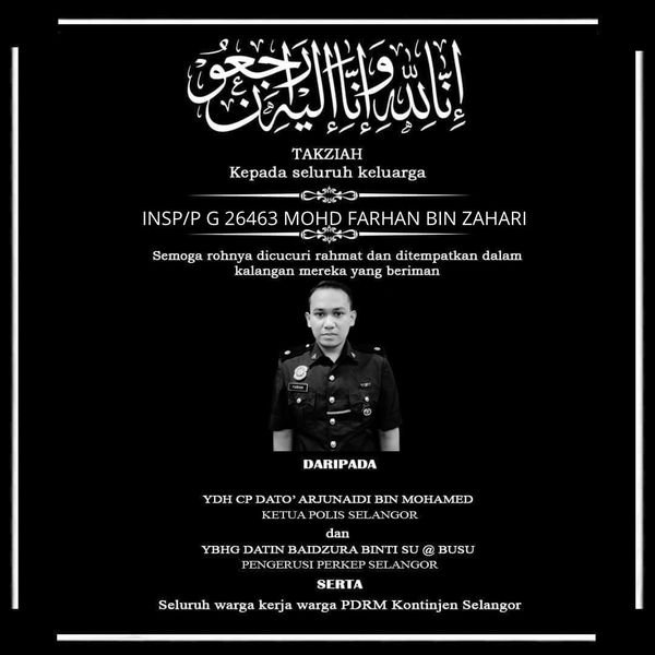 Ketua Jabatan Siasatan dan Penguatkuasaan Trafik Selangor Supt Azman Shariat berkata mangsa dikenali sebagai Mohd Farhan Zahari, 28, berpangkat inspektor yang bertugas di Ibu Pejabat Polis Daerah Subang Jaya.