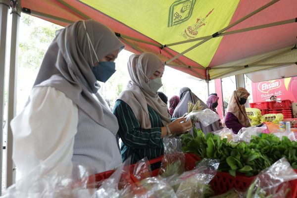 Orang ramai membeli barangan keperluan asas menerusi program Jelajah Jualan Ehsan anjuran Perbadanan Kemajuan Pertanian Selangor (PKPS) di tapak parkir Masjid Al-Bakri Kampung Bukit Naga, Shah Alam pada 18 Jun 2022. Foto FIKRI YUSOF/SELANGORKINI