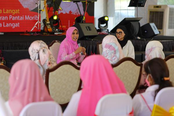 Yang Dipertuan Pekawanis Datin Seri Masdiana Muhamad bercakap ketika Program Santai Bual Bicara Jelajah Selangor Penyayang di Dataran Pantai Morib, Kuala Langat pada 25 Jun 2022. Foto HAFIZ OTHMAN/SELANGORKINI[/caption]