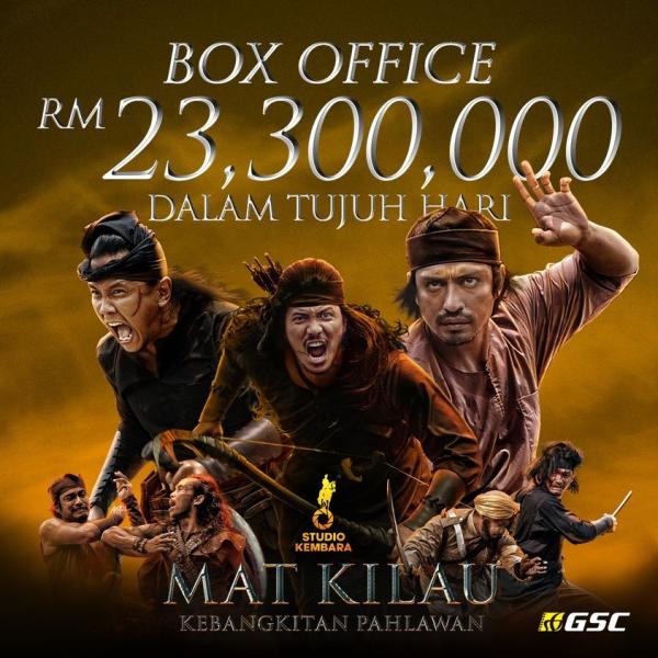 SHAH ALAM, 1 JULAI: Filem Mat Kilau Kebangkitan Pahlawan yang ditayangkan mulai 23 Jun lalu meraih kutipan lebih RM23.3 juta dalam tempoh tujuh hari tayangan.