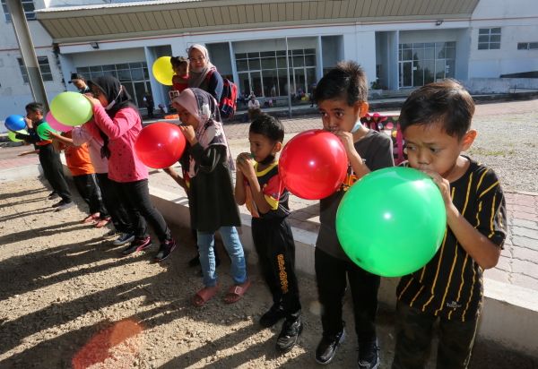 Kanak-kanak menyertai pertandingan tiup belon sampai pecah pada program Jelajah Selangor Penyayang di perkarangan Stadium Kuala Selangor pada 2 Julai 2022. Foto AHMAD ZAKKI JILAN/SELANGORKINI