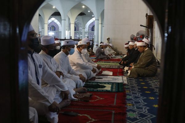 Imam Besar Masjid Sultan Salahuddin Abdul Aziz Shah, Muhammad Farhan Wijaya (kanan) memimpin bacaan takbir raya sempena Hari Raya Aidiladha. Turut hadir Dato’ Menteri Besar Dato’ Seri Amirudin Shari (tengah) bersama pemimpin dan EXCO Kerajaan Negeri di Masjid Sultan Salahuddin Abdul Aziz Shah, Shah Alam pada 9 Julai 2022. Foto REMY ARIFIN/SELANGORKINI