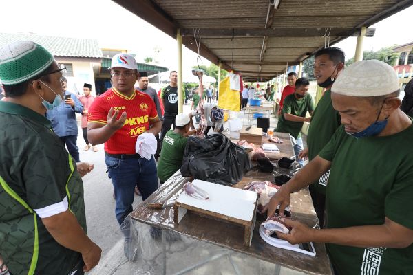 Dato' Menteri Besar Dato' Seri Amirudin Shari beramah mesra bersama petugas ibadah korban sempena Aidiladha di Masjid At-Takwa Selayang Baru, Batu Caves, Gombak pada 10 Julai 2022. Foto REMY ARIFIN/SELANGORKINI