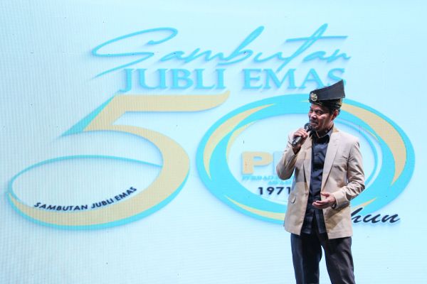 Persembahan lagu puisi oleh Maestro Syair Nusantara Roslan Madun ketika majlis makan malam sempena Sambutan 50 Tahun Jubli Emas Perbadanan Perpustakaan Awam Selangor (PPAS) di Hotel Le Meridien, Petaling Jaya pada 14 Julai 2022. Foto FIKRI YUSOF/SELANGORKINI