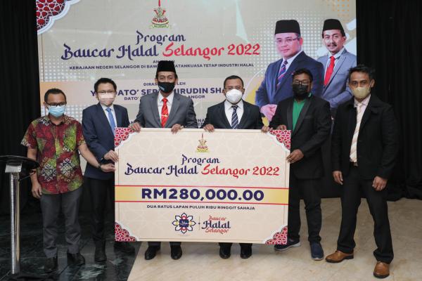 Simbolik penyerahan baucar disampaikan EXCO Pengguna dan Industri Halal Mohd Zawawi Ahmad Mughni di Dewan Annex, Bangunan Sultan Salahuddin Abdul Aziz Shah di sini.
