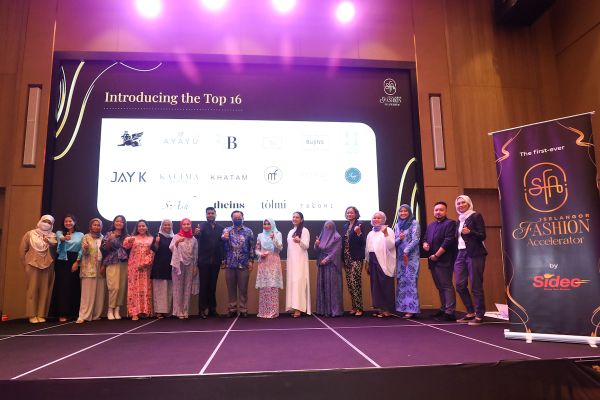 Ketua Pegawai Eksekutif Perbadanan Teknologi Maklumat dan Ekonomi Digital Selangor (Sidec) Yong Kai Ping (tengah) serta Yang Dipertua Pertubuhan Kebajikan dan Amal Wanita Selangor (Pekawanis) Datin Seri Masdiana Muhamad (lapan, kanan) bersama 16 peserta terpilih menjalani program Pemecut Fesyen Selangor di Hilton Hotel I-City, Shah Alam pada 29 Julai 2022. Foto REMY ARIFIN/SELANGORKINI