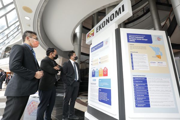Kakitangan awam melihat pameran Rancangan Selangor Pertama (RS-1) yang dipamerkan di luar Dewan Negeri Selangor, Shah Alam pada 2 Ogos 2022. Foto FIKRI YUSOF/SELANGORKINI