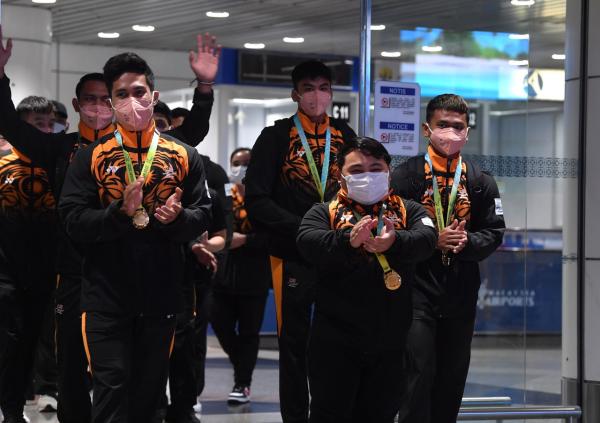 SEPANG, 6 OGOS: Kepulangan barisan wira negara yang berjuang mengharumkan nama Malaysia di Sukan Komanwel Birmingham 2022 disambut dalam suasana meriah di Lapangan Terbang Antarabangsa Kuala Lumpur (KLIA) di sini hari ini.