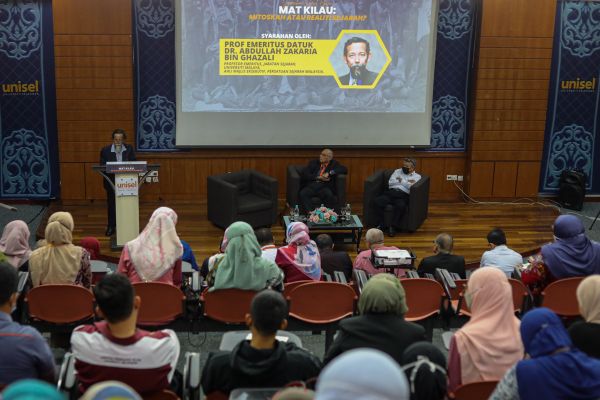Profesor Emeritus, Jabatan Sejarah, Universiti Malaya Prof Emeritus Dr. Abdullah Zakaria Ghazali memberikan syarahan ketika Majlis Pembukaan Syarahan Darul Ehsan Mat KIlau : Mitoskah Atau Realiti Sejarah anjuran Institut Darul Ehsan dan Unisel di Universiti Selangor, Shah Alam pada 17 Ogos 2022. Foto HAFIZ OTHMAN/ SELANGORKINI