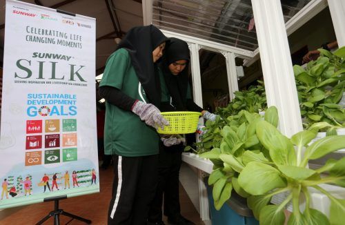 Meliyana Abdullah, 14, (kanan) dan Nurul Syafiqah Abdullah, 14, memetik sayur hidroponik Pak Choy pada program CSR Sunway Silk 2022 anjuran Selangor Youth Community (SAY) di Pusat Penjagaan Anak-Anak Yatim dan Miskin Rukaiyah Sungai Merab, Kajang pada 21 Ogos 2022. Foto AHMAD ZAKKI JILAN/SELANGORKINI