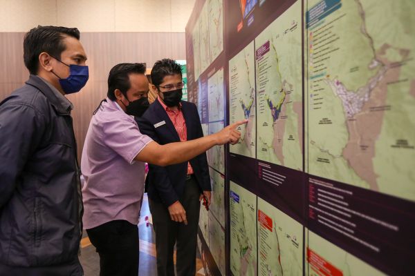 Kakitangan Majlis Perbandaran Hulu Selangor (MPHS) (tengah) memberi penerangan berkaitan draf perancangan kepada tetamu yang hadir ketika Majlis Pelancaran Program Publisiti dan Penyertaan Awam Draf RAncangan Kawasan Khas Genting Highlands Hulu Selangor