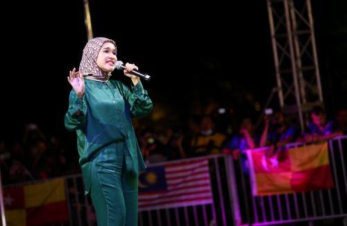 Penyanyi terkenal Ernie Zakri menghiburkan orang ramai dengan lagu Gundah sempena sambutan Hari Kebangsaan ke-65 di Dataran Kemerdekaan Shah Alam pada 30 Ogos 2022. Foto AHMAD ZAKKI JILAN/SELANGORKINI