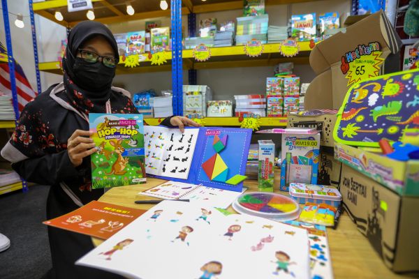 Kakitangan Wasapower Group Sdn Bhd menunjukkan produk buku kanak - kanak mereka ketika Ekspo Usahawan Selangor (Selbiz) 2022 anjuran PKNS di Pusat Konvensyen Shah Alam (SACC) , Shah Alam pada 3 September 2022. Foto HAFIZ OTHMAN/SELANGORKINI