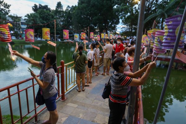Masyarakat cina melihat teka - teki tanglung yang di gantung ketika Pesta Tanglung DUN Kajang 2022 di Taman Rekreasi Bandar Mahkota Cheras, Kajang pada 4 September 2022. Foto HAFIZ OTHMAN/SELANGORKINI