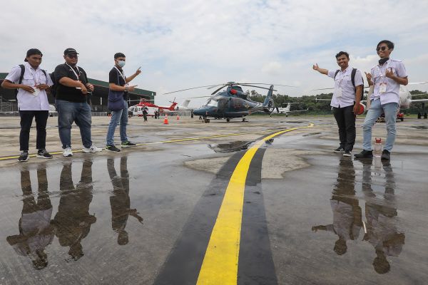 Pengunjung tidak melepaskan merakam gambar helikopter yang dipamerkan sempena Pameran Udara Selangor (SAS) 2022 di Pusat Penerbangan Wilayah Skypark, Bukit Jelutong, Shah Alam pada 9 September 2022. Foto REMY ARIFIN/SELANGORKINI