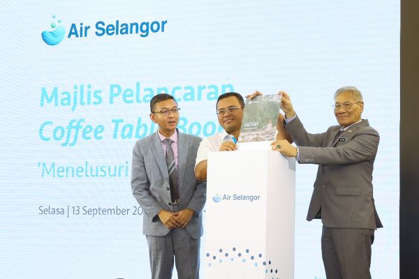 Dato' Menteri Besar Dato' Seri Amirudin Shari (tengah) dan Timbalan Menteri Alam Sekitar dan Air Dato' Dr. Mansor Othman (kanan) melakukan gimik pelancaran buku ‘Coffee Table’ yang berkisarkan sejarah perjalanan agensi itu dalam perkhidmatan air serta disaksikan Ketua Pegawai Eksekutif Pengurusan Air Selangor Sdn Bhd (Air Selangor) Suhaimi Kamaralzaman (kiri) di pusat beli-belah One Utama, Petaling Jaya pada 13 September 2022. Foto REMY ARIFIN/SELANGORKINI