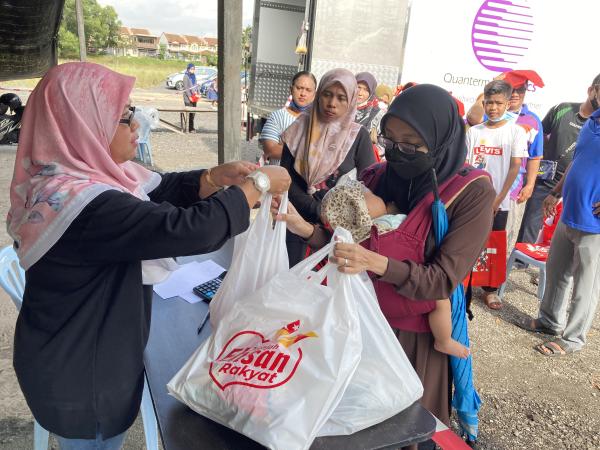 HULU LANGAT, 7 OKT: Orang ramai beratur seawal jam 7.30 pagi untuk menunggu lori Jelajah Ehsan Rakyat di Taman Cheras Prima di sini yang pertama kali dianjurkan di Dewan Undangan Negeri (DUN) Balakong.