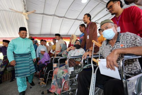 Dato' Menteri Besar Dato' Seri Amirudin Shari menyantuni penerima Surat Kelulusan Pemberimilikan Tanah (Borang 5A) Parit 8 1/2 Barat Mukim Sabak selepas majlis penyerahan surat kelulusan tersebut sempena Jelajah Selangor Penyayang di Masjid Jamek Sultan Hishamuddin, Sabak Bernam pada 14 Oktober 2022. Foto AHMAD ZAKKI JILAN/SELANGORKINI