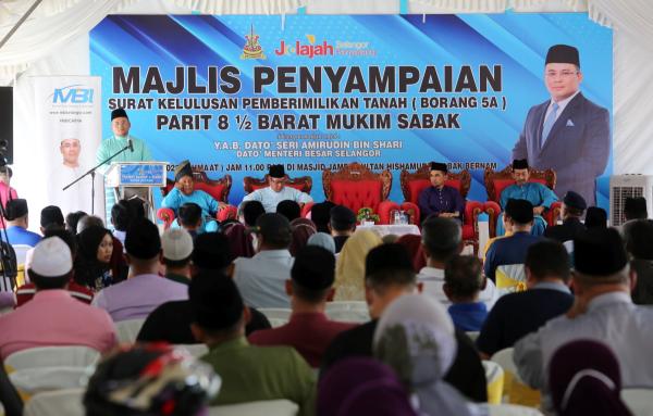 Beliau ditemui selepas majlis penyampaian surat kelulusan pemberimilikan tanah Parit 8 1/2 Barat, Mukim Sabak di Masjid Jamek Sultan Hishamuddin di sini.