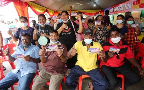 Sebahagian penerima baucar Jom Shopping Deepavali gembira setelah menerima baucar tersebut yang disampaikan oleh Dato' Menteri Besar Dato' Seri Amirudin Shari di Sri Ternak, Gombak pada 16 Oktober 2022. Foto AHMAD ZAKKI JILAN/SELANGORKINI