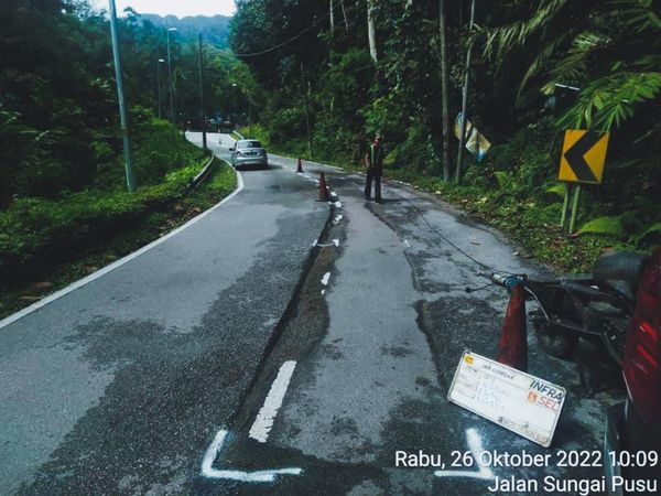 SHAH ALAM, 27 OKT: Kerja baik pulih Jalan Sungai Pusu di Gombak selesai dalam tempoh 24 jam selepas aduan penduduk di Twitter.
