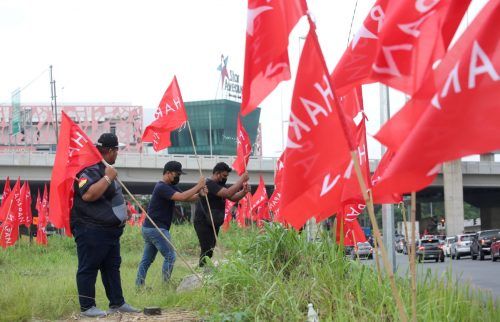 Jentera parti Pakatan Harapan (HARAPAN) rancak memacak bendera menjelang pilihan raya umum ke-15 (PRU15) di Jalan Lapangan Terbang Subang, Shah Alam pada 7 November 2022. Foto AHMAD ZAKKI JILAN/SELANGORKINI