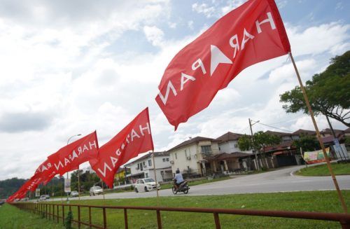 Deretan bendera parti Pakatan Harapan (HARAPAN) berkibaran ketika tinjauan Selangorkini di sekitar Saujana Utama, Sungai Buloh pada 10 November 2022. Foto NUR ADIBAH AHMAD IZAM/SELANGORKINI
