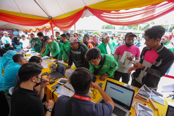 Penunggang p-panggilan membuat pendaftaran KWSP ketika hadir ke majlis Perasmian Karnival Penggerak Belia Selangor di Sri Gombak, Gombak pada 13 November 2022. Foto HAFIZ OTHMAN/SELANGORKINI