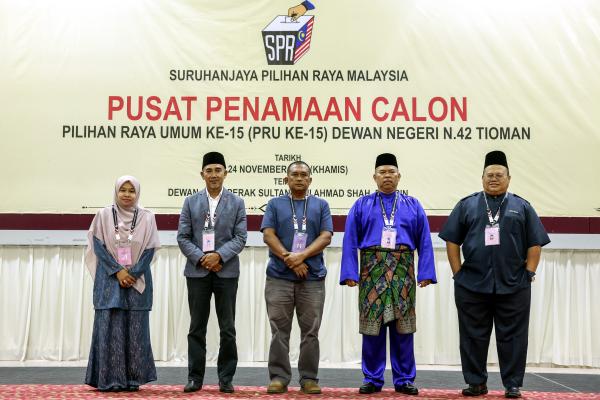 ROMPIN, 24 NOV: Pilihan Raya Umum ke-15 (PRU15) Dewan Undangan Negeri (DUN) Tioman menyaksikan pertandingan lima penjuru antara calon Barisan Nasional (BN), Perikatan Nasional (PN), Pakatan Harapan (PH), Pejuang dan seorang Bebas.