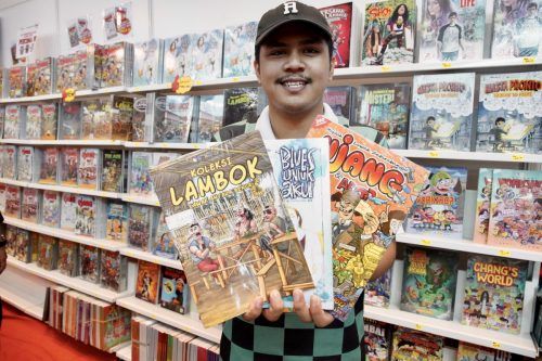 Pempamer, Adib Nuqman menunjukkan sebahagian dari koleksi buku yang ada di reruai Bakazon sempena Pesta Buku Antarabangsa Selangor (SIBF) 2022 di Pusat Konvensyen Majlis Bandaraya Shah Alam (MBSA), Shah Alam pada 6 Disember 2022. Foto NUR ADIBAH AHMAD IZAM/SELANGORKINI
